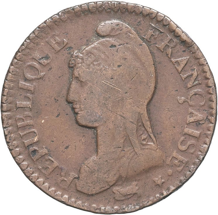 - Directoire (1795-1799). Un décime Dupré An 8 (1799), AA, Metz.