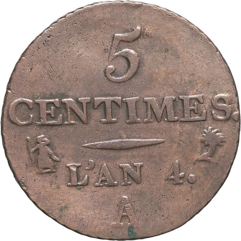 - Directoire (1795-1799). Cinq centimes Dupré, petit module An 4 (1795), A, Paris.