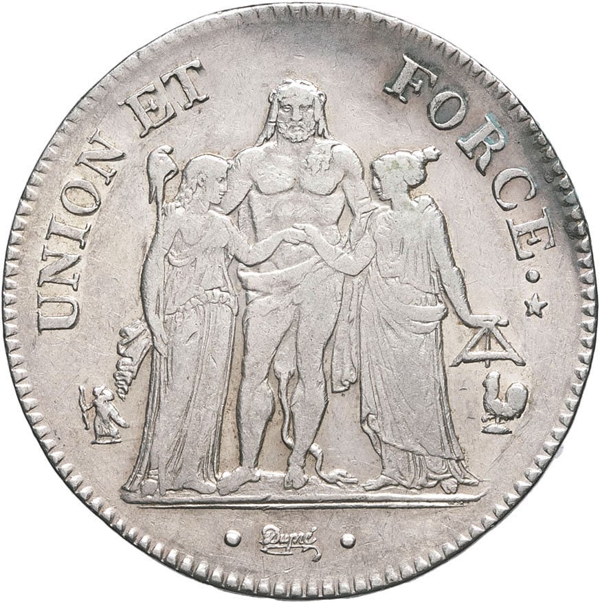 - Consulat (1799-1804). 5 francs Union et Force An 8 (1799), A, Paris.
