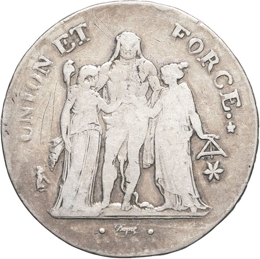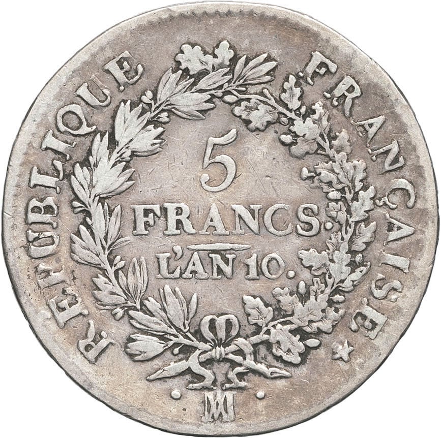 - Consulat (1799-1804). 5 francs Union et Force An 10 (1801), MA, Marseille.