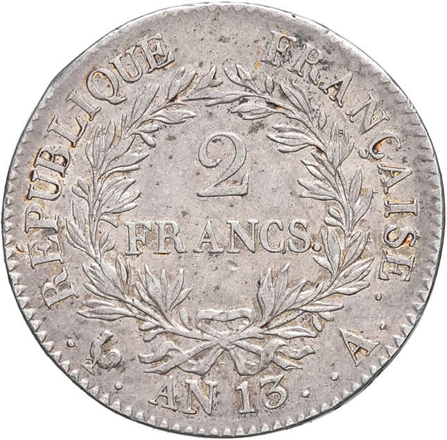 - Premier Empire / Napoléon Ier (1804-1814). 2 francs calendrier révolutionnaire An 13 (1805), W, Lille.