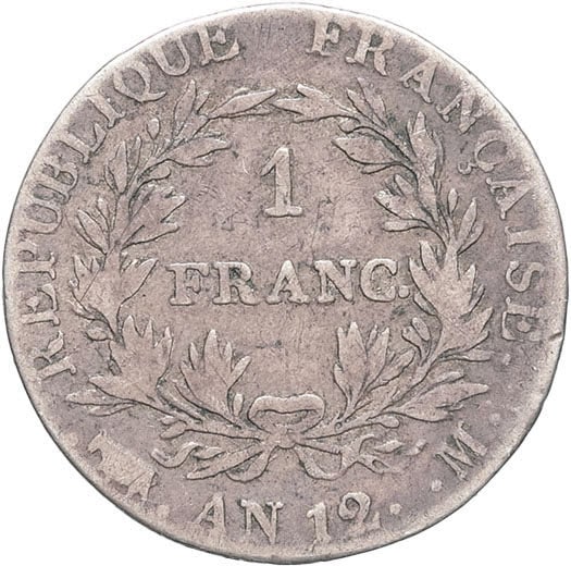 - Premier Empire / Napoléon Ier (1804-1814). 1 franc calendrier révolutionnaire An 12 (1804), M, Toulouse.