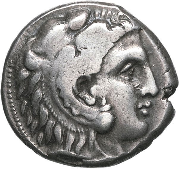 Entella, fondée par les Troyens vers 500 av. J.-C., est l’une des possibilités majeures pour l’emplacement du “camp” des Carthaginois en Sicile. C’est sans doute leur principal bastion où les mercenaires à la solde de Carthage reçoivent leur paiement en bonne monnaie, inspirée des tétradrachmes de poids attique, avec au droit un motif grec ou sicilien, Héraclès pour notre exemplaire, et un revers plus libre avec le palmier-dattier (Phœnix en grec) qui est l’armoirie parlante de Carthage et des Phéniciens. Une autre attribution d’atelier a été proposée à Lilybée, actuelle Marsala