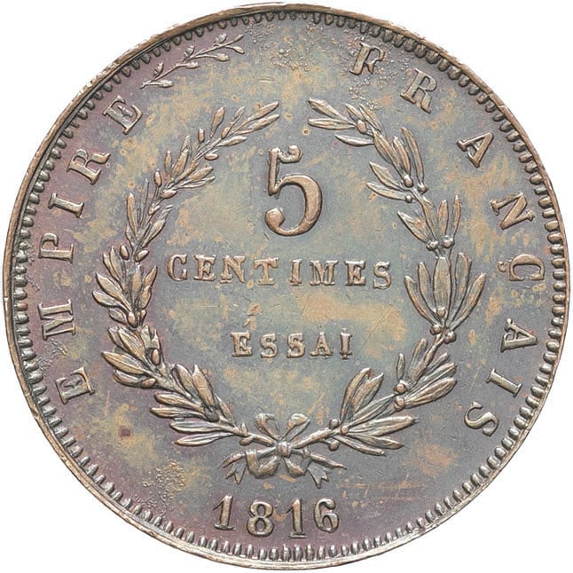 - Napoléon II (1811-1832). Essai de 5 centimes 1816, Bruxelles (Würden).