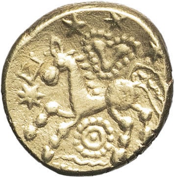 - CELTIC Rèmes / Belgium. Statère à l'œil ND (première moitié du Ier siècle avant J.-C. et Guerre des Gaules).
