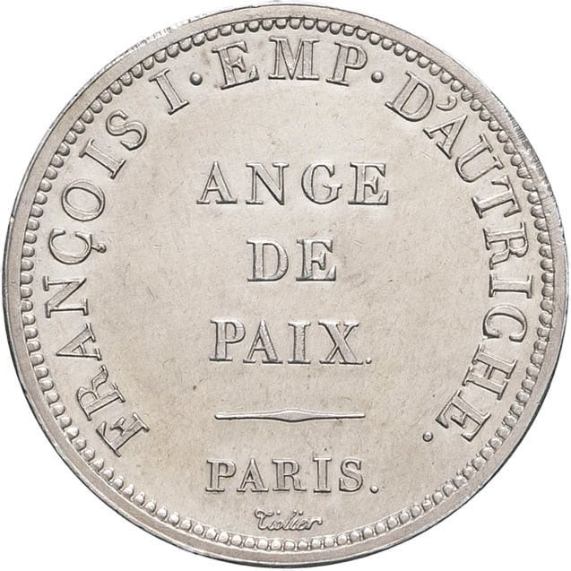 Rv. FRANÇOIS I. EMP. D'AUTRICHE. Au centre : ANGE DE PAIX et au-dessous PARIS et signature Tiolier cursive.