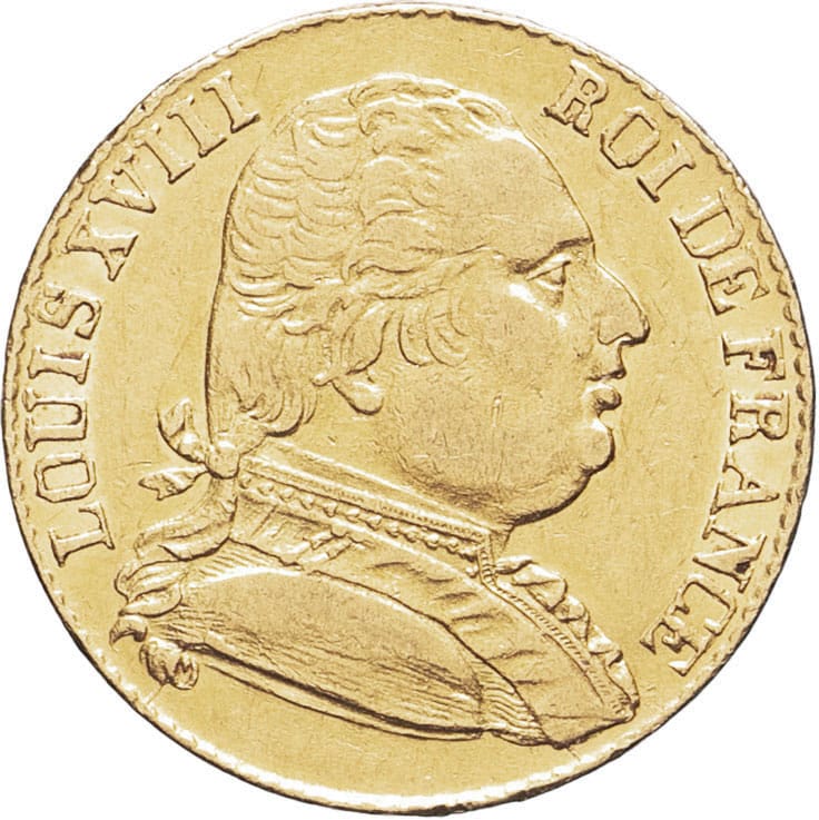 - Louis XVIII (1814-1824). 20 francs buste habillé 1815, R, Londres.
