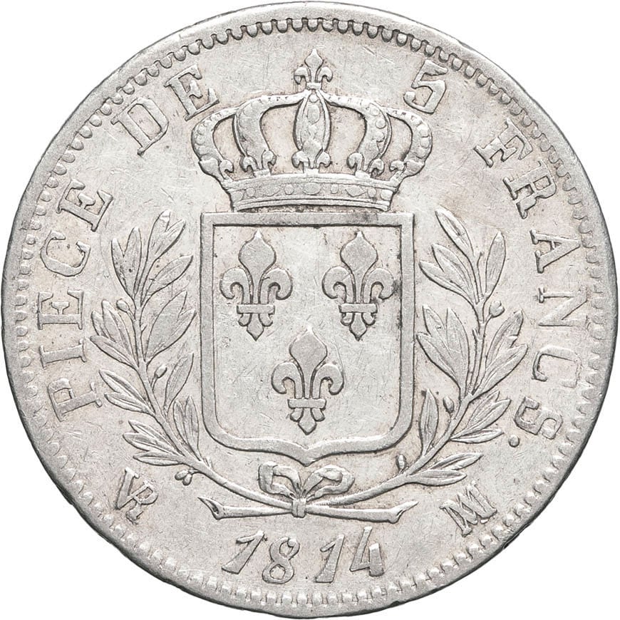 - Louis XVIII (1814-1824). 5 francs buste habillé 1814, MA, Marseille.