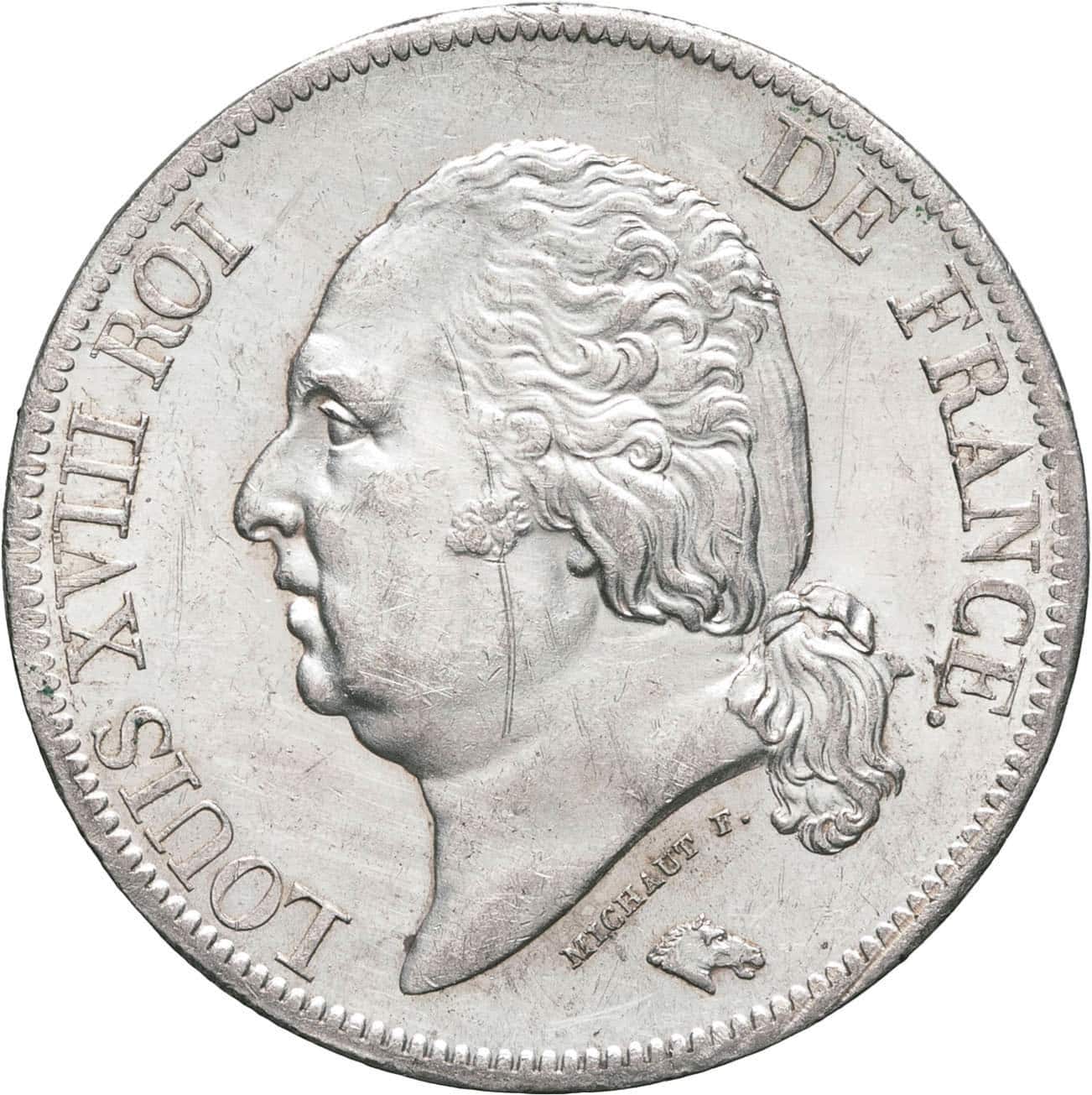 Av. LOUIS XVIII ROI DE FRANCE. Tête nue à gauche, au-dessous signature MICHAUT F. et tête de cheval.