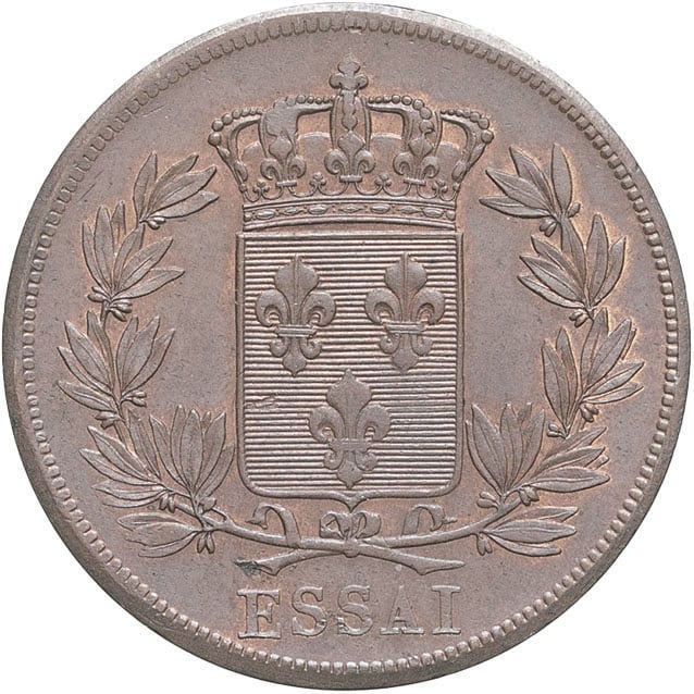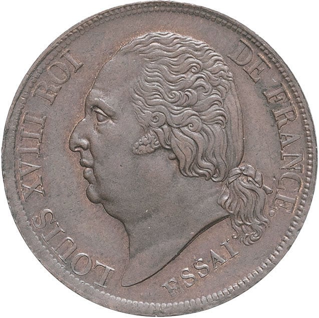 - Louis XVIII (1814-1824). Essai au module de 5 centimes ND (1817), Paris.
