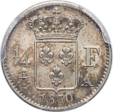 - Charles X (1824-1830). 1/4 franc 1830, W, Lille.