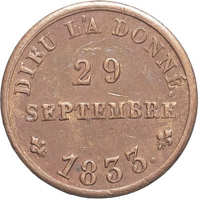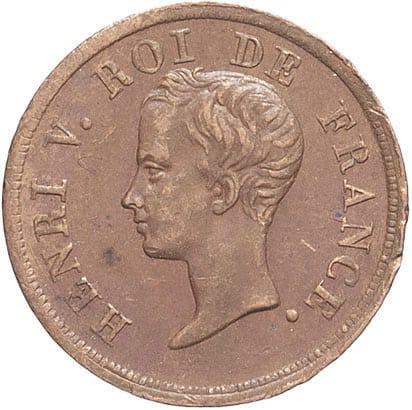 - Henri V (1820-1883). Module d'1/2 franc, pour la majorité du duc de Bordeaux, prétendant au trône de France 1833, Bruxelles (Würden).