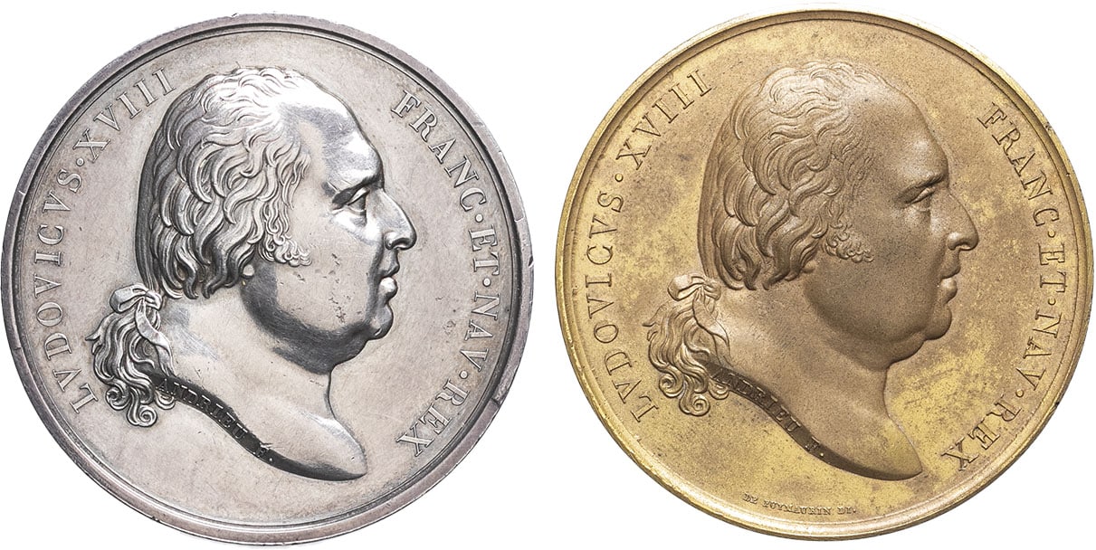 Av. LVDOVICVS XVIII - FRANC. ET NAV. REX. Buste tête nue de Louis XVIII à droite ; au-dessous, signature ANDRIEU F.