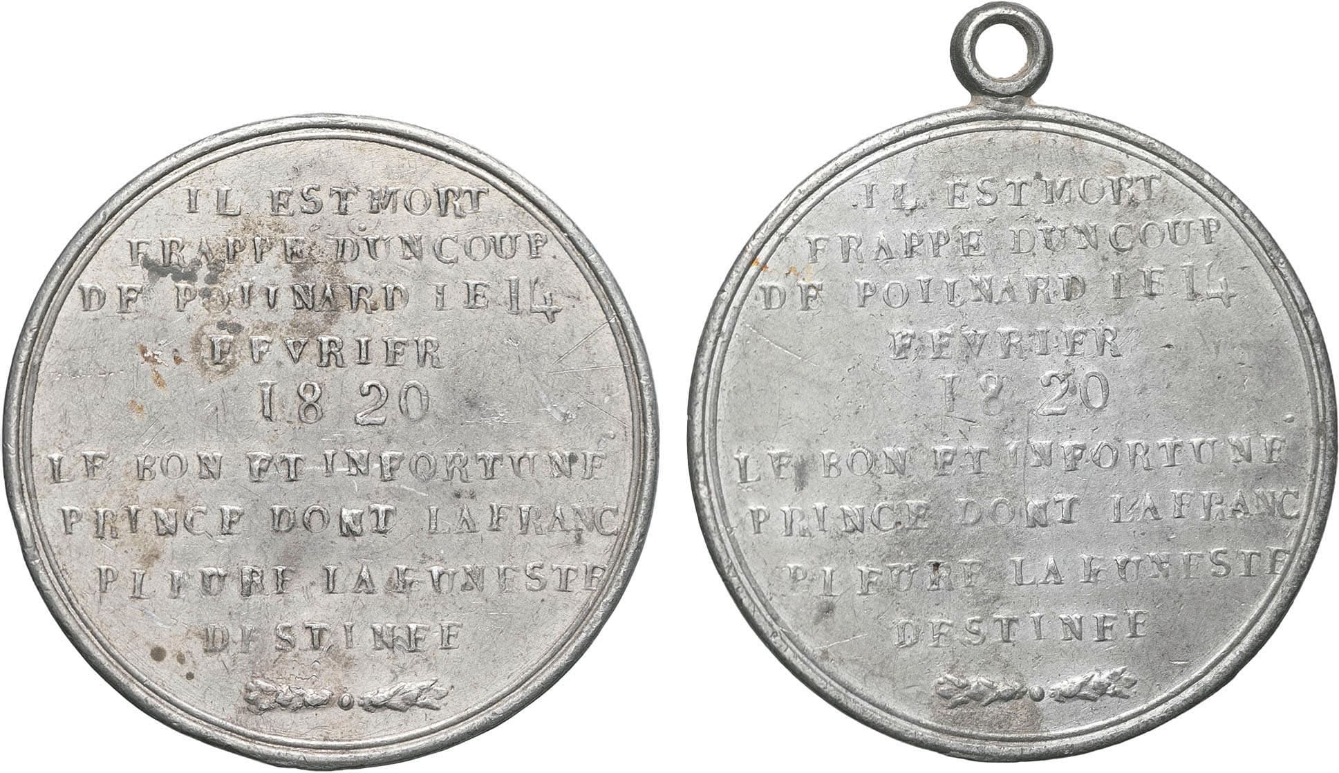 - Henri V (1820-1883). Ensemble de 2 médailles, mort de Charles Ferdinand duc de Berry 1820.