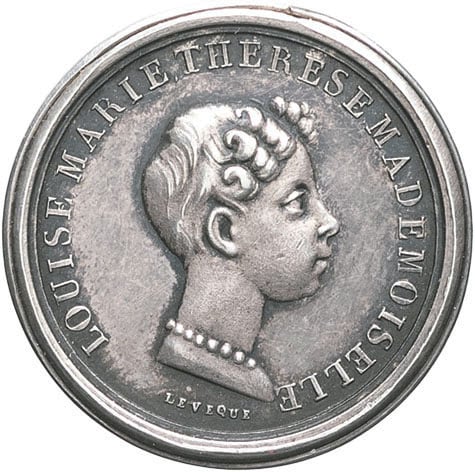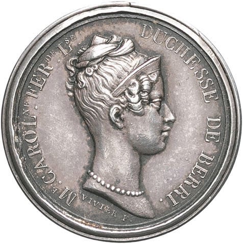 - Henri V (1820-1883). Médaillette, Marie Caroline duchesse de Berry et Louise Marie Thérèse mademoiselle d’Artois, par Vivier ND (1827).