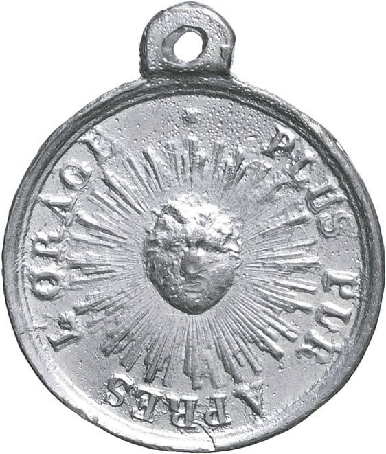 Fonte d’étain, avec bélière. TTB.