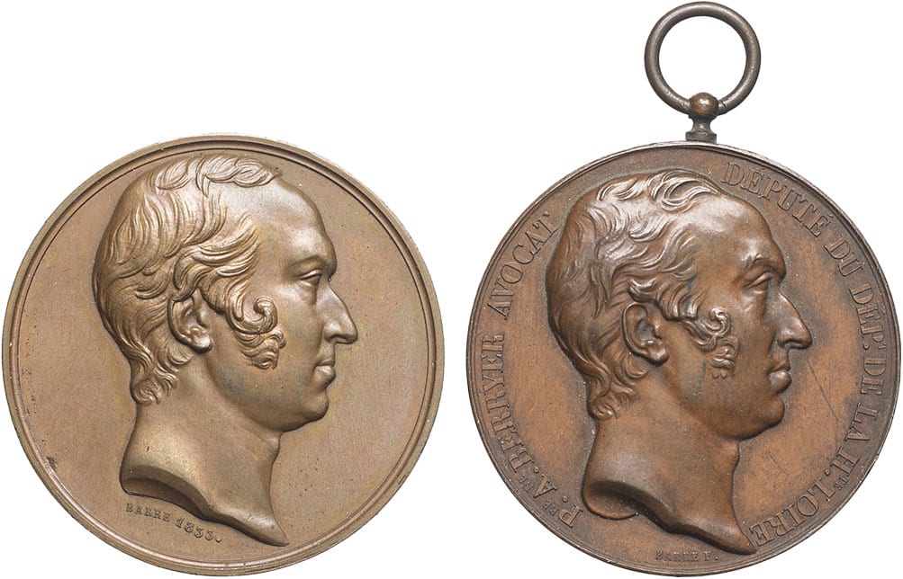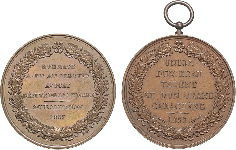 - Henri V (1820-1883). Lot de 2 médailles, Pierre-Antoine Berryer avocat et député de la Haute-Loire, par Barre 1833.