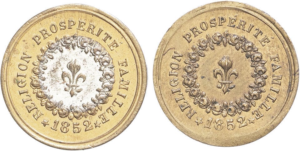 - Henri V (1820-1883). Paire de médaillettes, religion prospérité et famille 1852.