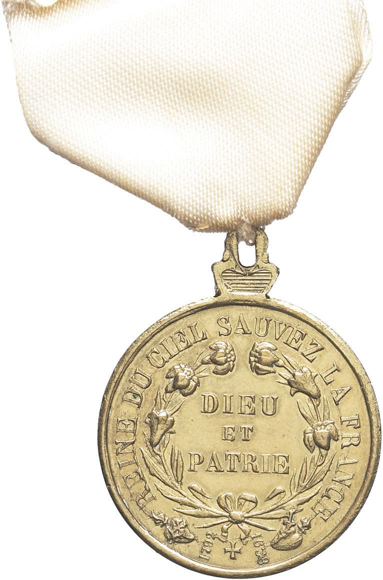 Ces médailles auraient été distribuées dans le Poitou vers 1872. Avec un ruban blanc. Superbe.