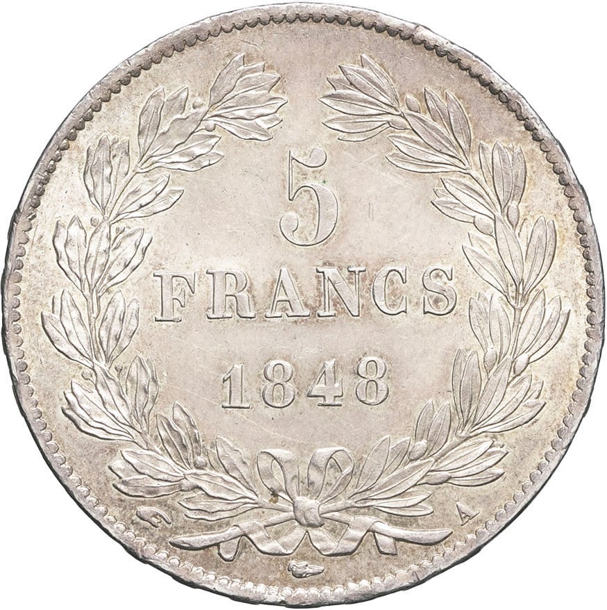 - Louis-Philippe Ier (1830-1848). 5 francs, IIIe type Domard 1848, A, Paris.