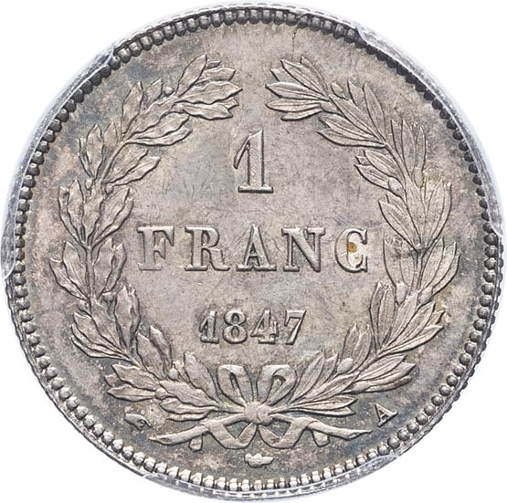 - Louis-Philippe Ier (1830-1848). 1 franc tête laurée 1847, A, Paris.