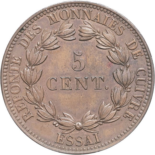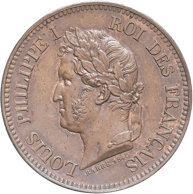 - Louis-Philippe Ier (1830-1848). Essai de 5 centimes, refonte des monnaies de cuivre 1840, Paris.