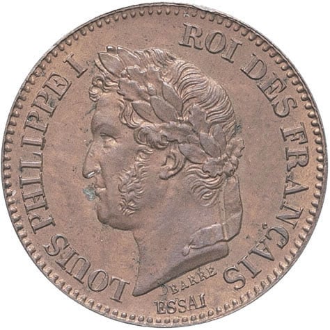 - Louis-Philippe Ier (1830-1848). Essai de 2 centimes à la couronne 1842, Paris.