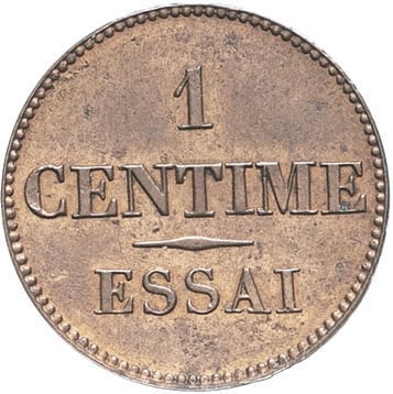 - Louis-Philippe Ier (1830-1848). Essai de 1 centime, refonte des monnaies de cuivre, par Barre ND (1840), Paris.