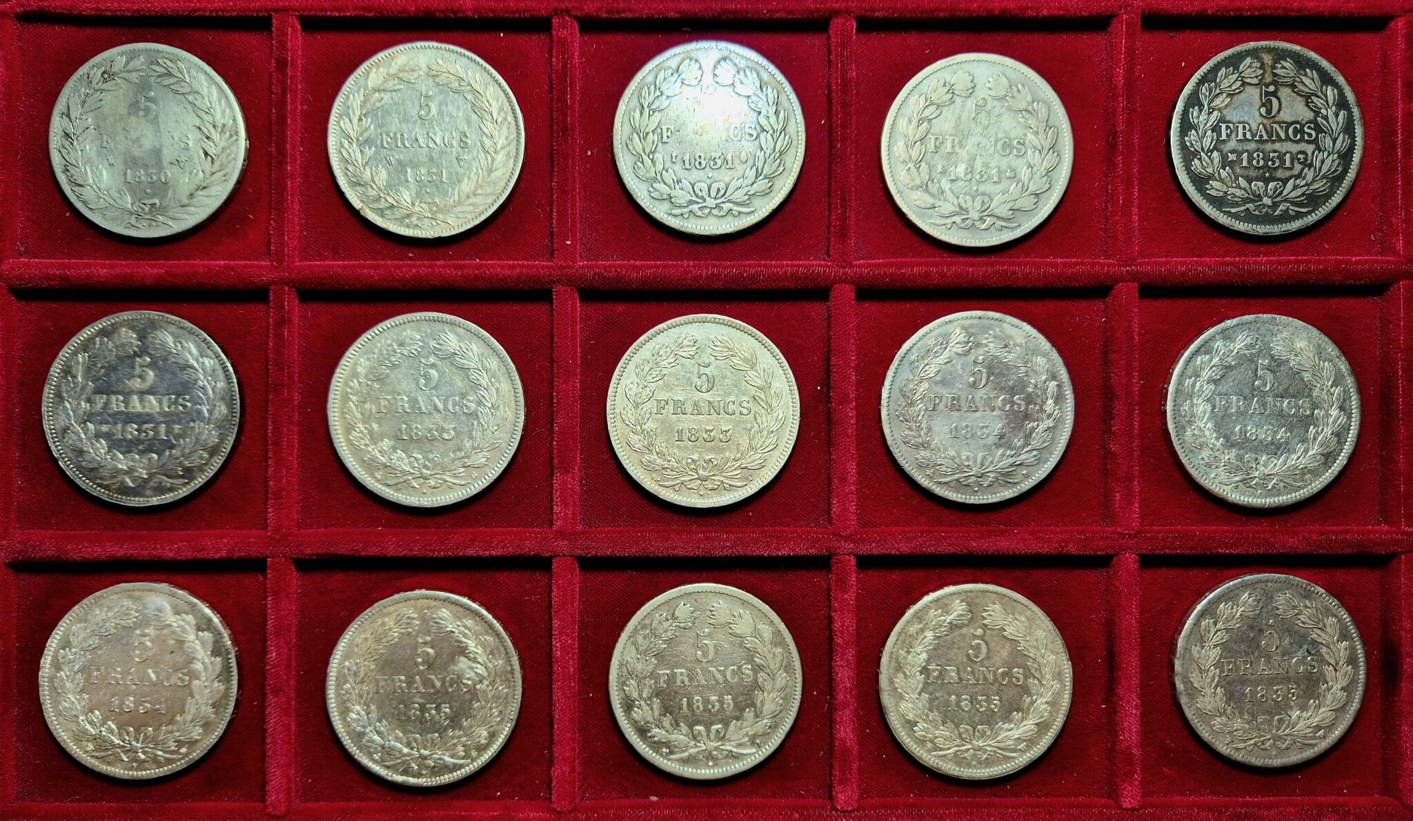 - Louis-Philippe Ier (1830-1848). Lot de 15 écus de 5 francs.