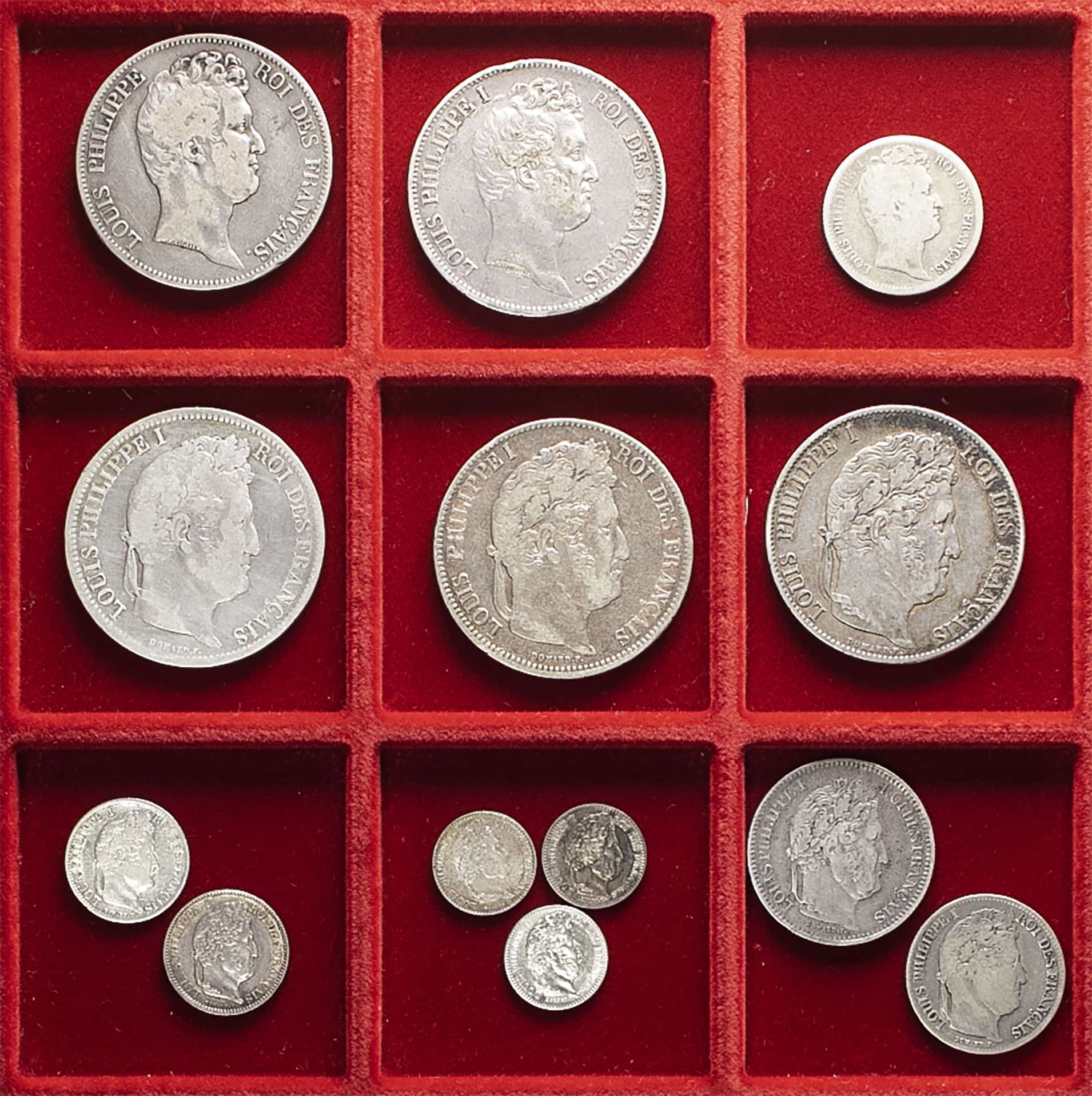 - Louis-Philippe Ier (1830-1848). Lot de 13 monnaies en argent.