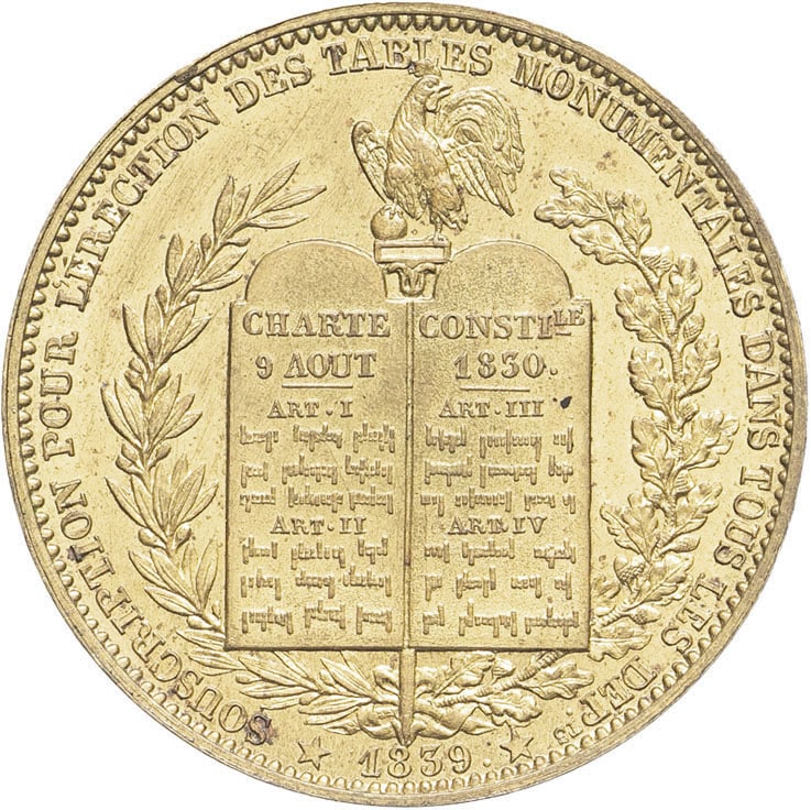 - Louis-Philippe Ier (1830-1848). Médaille, souscription pour l’érection de tables monumentales, par Borrel 1839.