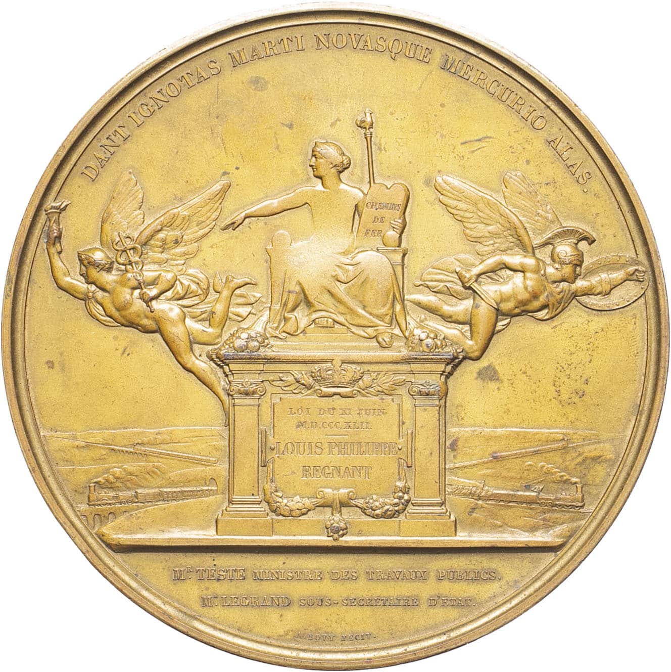 - Louis-Philippe Ier (1830-1848). Épreuve de médaille, loi du 10 juin 1842 sur les chemins de fer, par Antoine Bovy 1842, Paris.