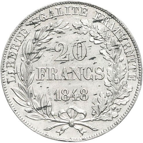 - IIe République (1848-1852). Essai de 20 francs, concours de 1848, par Alard 1848, Paris.