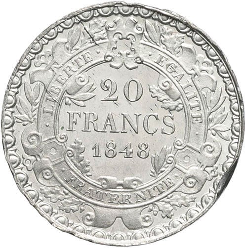 - IIe République (1848-1852). Essai de 20 francs, concours de 1848, par Bovy 1848, Paris.