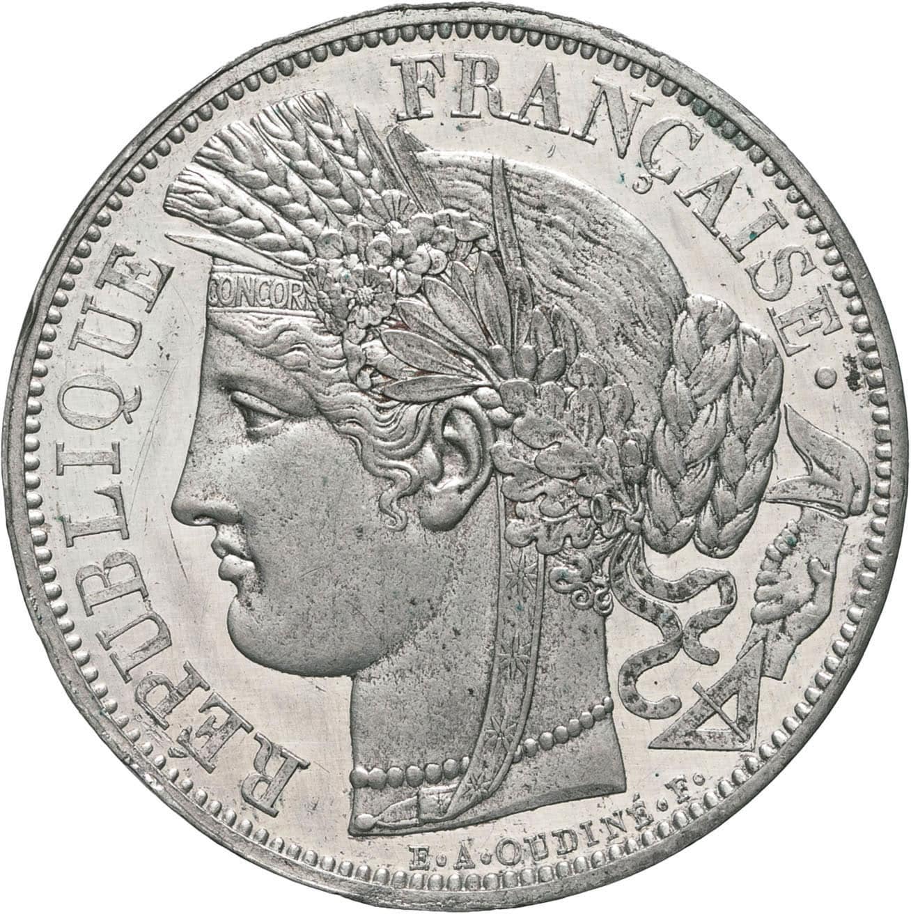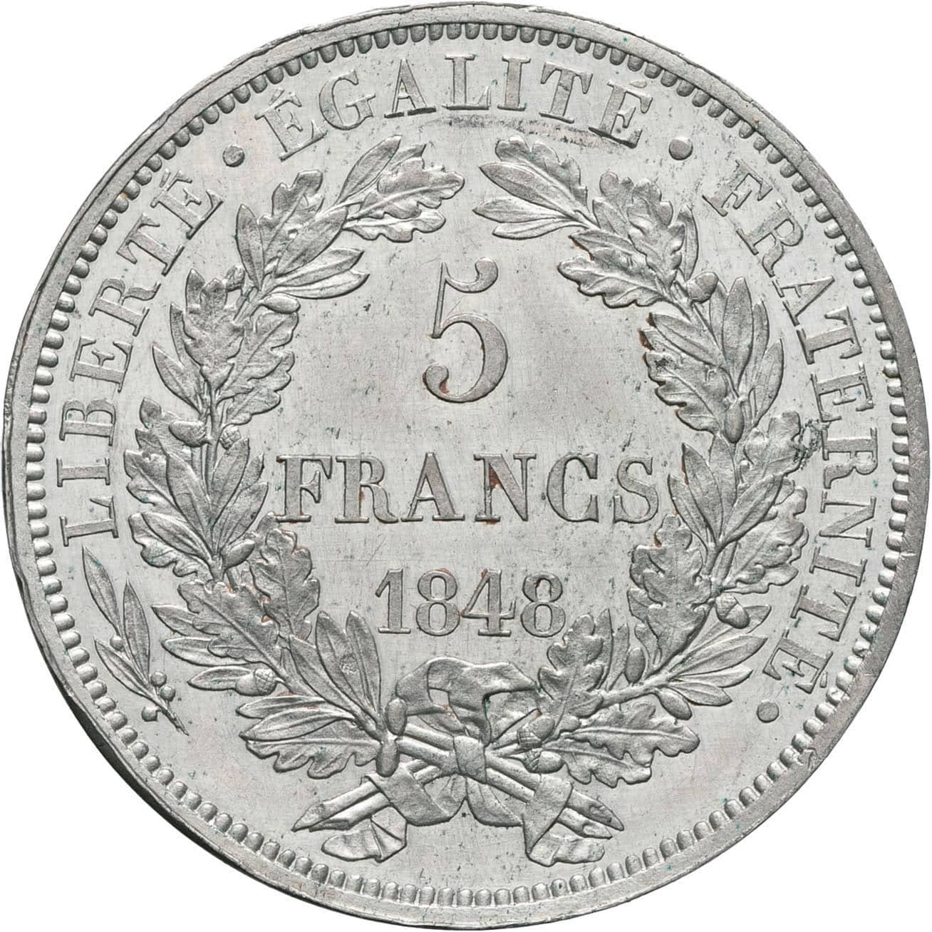 - IIe République (1848-1852). Essai de 5 francs, concours de 1848, par Oudiné 1848, Paris.