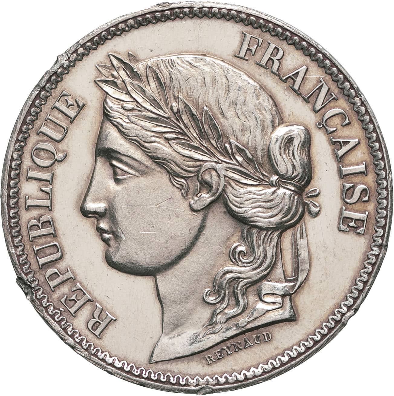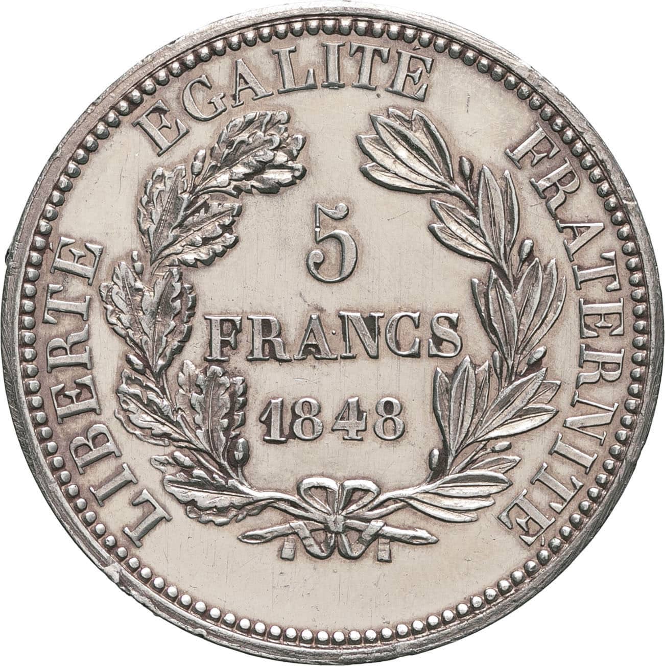 - IIe République (1848-1852). Essai de 5 francs, concours de 1848 par Reynaud 1848, Paris.