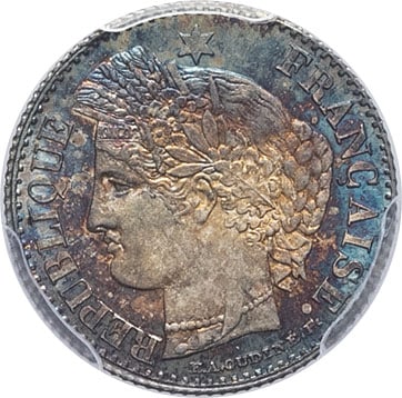 Av. RÉPUBLIQUE FRANÇAISE. Tête de la République à gauche en Cérès, sous une étoile, au-dessous signature E. A. OUDINÉ. F.