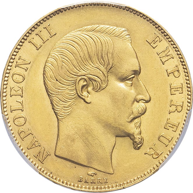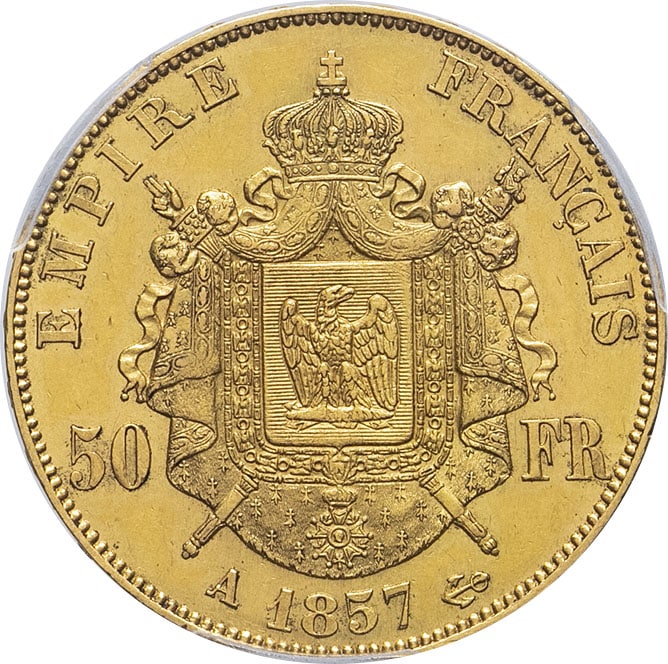- Second Empire / Napoléon III (1852-1870). 50 francs tête nue 1857, A, Paris.