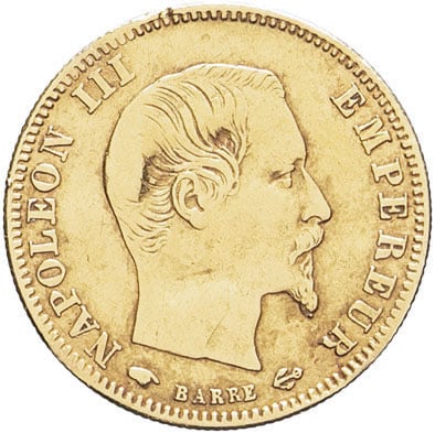 Rv. EMPIRE FRANÇAIS. Dans une couronne formée de deux branches : 5 FRANCS (date) et au-dessous (atelier).
