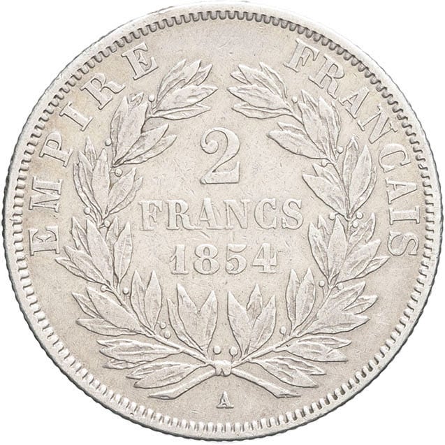 - Second Empire / Napoléon III (1852-1870). 2 francs tête nue 1854, A, Paris.