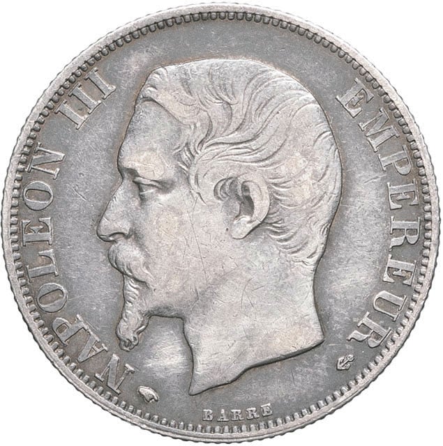 Av. (différent) NAPOLEON III - EMPEREUR (différent). Tête nue à gauche ; au-dessous, signature BARRE.