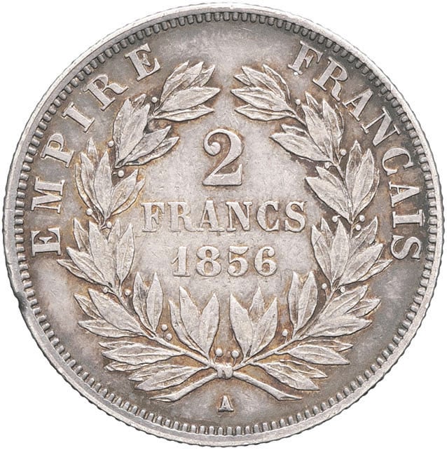 - Second Empire / Napoléon III (1852-1870). 2 francs tête nue 1856, A, Paris.