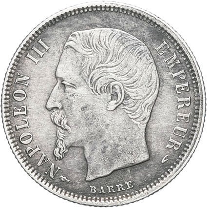 Av. (différent) NAPOLEON III EMPEREUR (différent). Tête nue à gauche, au-dessous BARRE.