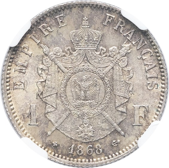 - Second Empire / Napoléon III (1852-1870). 1 franc tête laurée 1868, BB, Strasbourg.