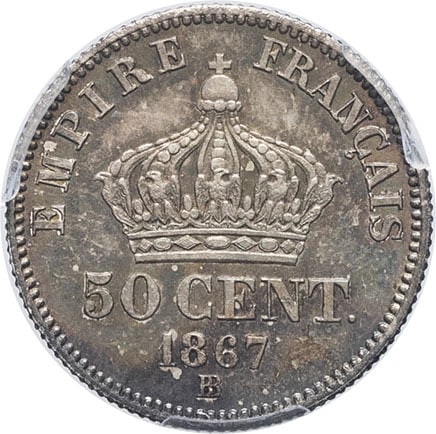 - Second Empire / Napoléon III (1852-1870). 50 centimes tête laurée 1867, BB, Strasbourg.