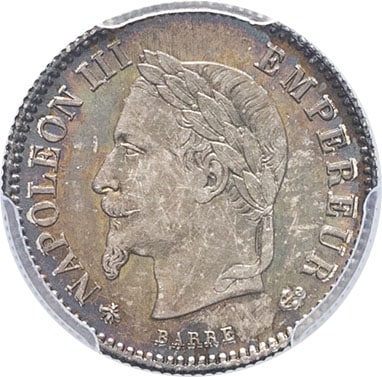 Av. (différent) NAPOLEON III - EMPEREUR (différent). Tête laurée à gauche ; au-dessous signature BARRE.
