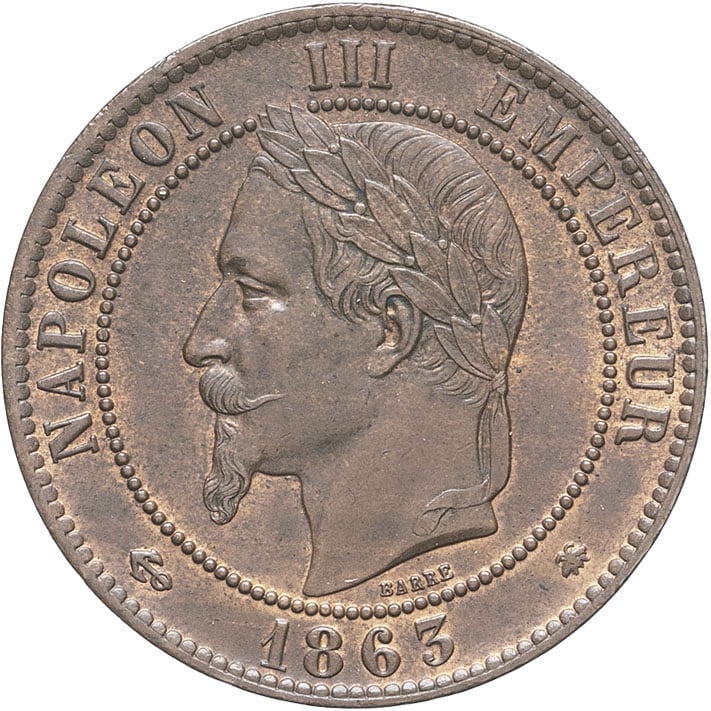 - Second Empire / Napoléon III (1852-1870). Dix centimes tête laurée 1863, A, Paris.