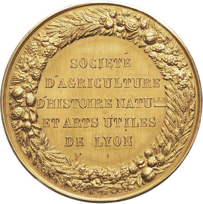 - Second Empire / Napoléon III (1852-1870). Médaille, Société d’agriculture, d’histoire naturelle et arts utiles de Lyon, François Rozier fondateur, par Caqué ND (1860-1879, modèle de 1834), Paris.