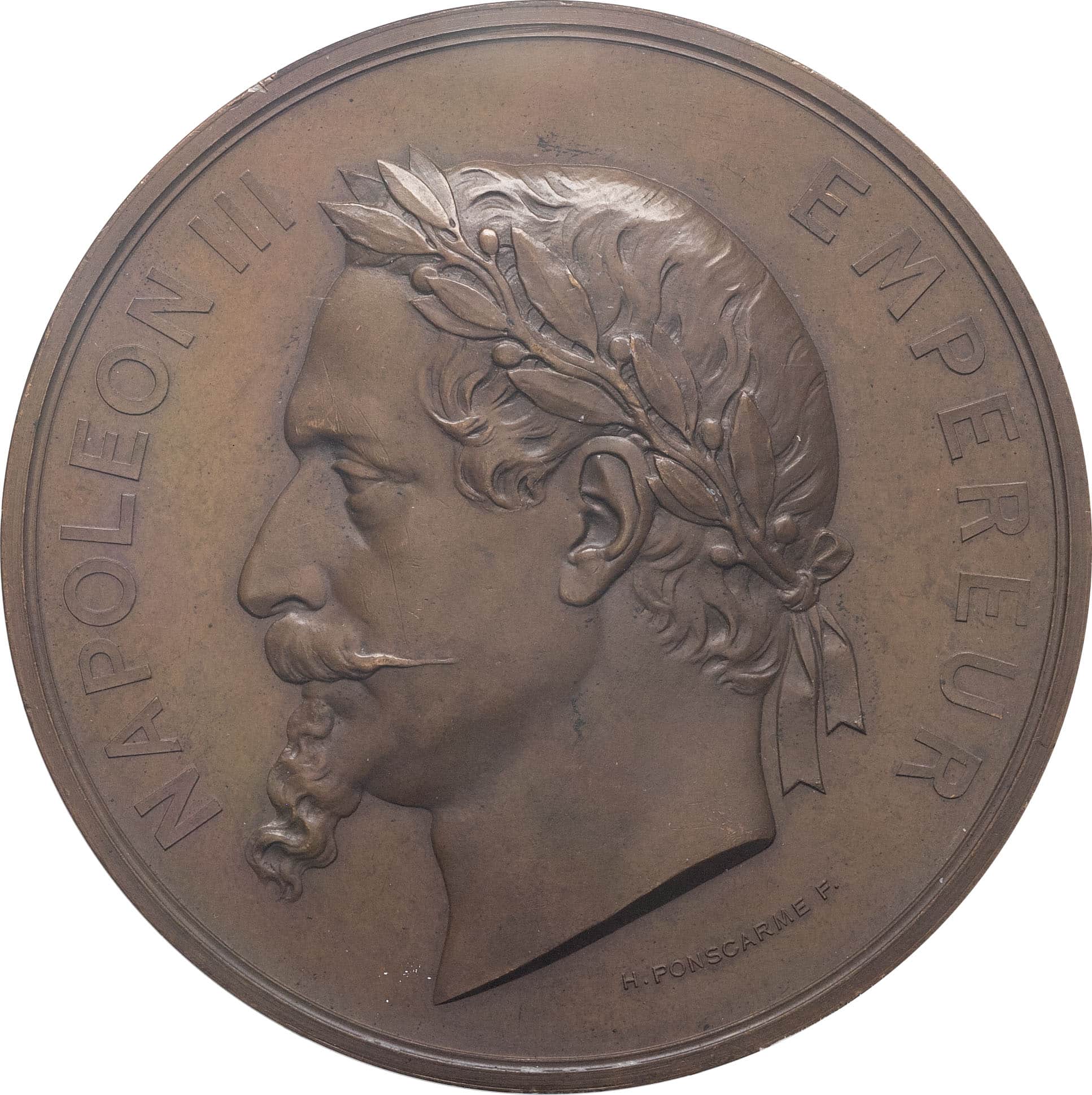 Av. NAPOLEON III - EMPEREUR. Tête laurée à gauche ; au-dessous signature H. PONSCARME F.