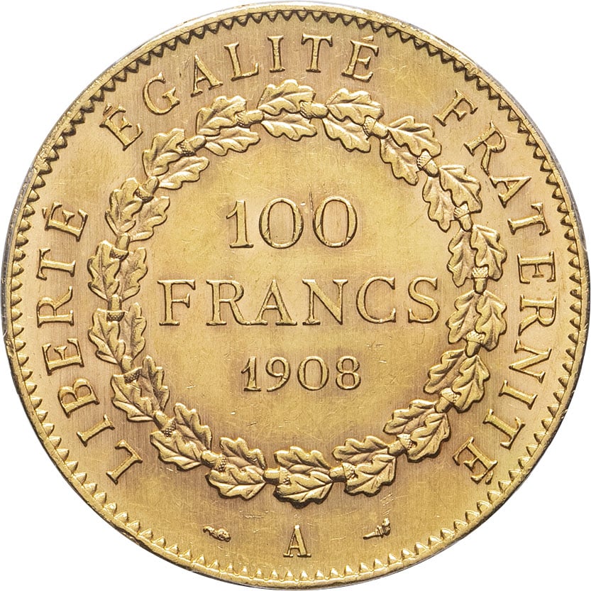 - IIIe République (1870-1940). 100 francs Génie 1908, A, Paris.